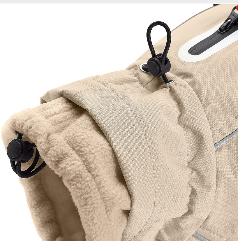 Der leichte, wasserabweisende Mantel hält den Rumpf deines Hundes trocken und warm, bevor Nässe überhaupt eine Chance hat. Das kuschelige Fleece-Innenfutter sorgt zusätzlich für angenehme Wärme und hohen Tragekomfort – perfekt für kalte und ungemütliche Tage.
