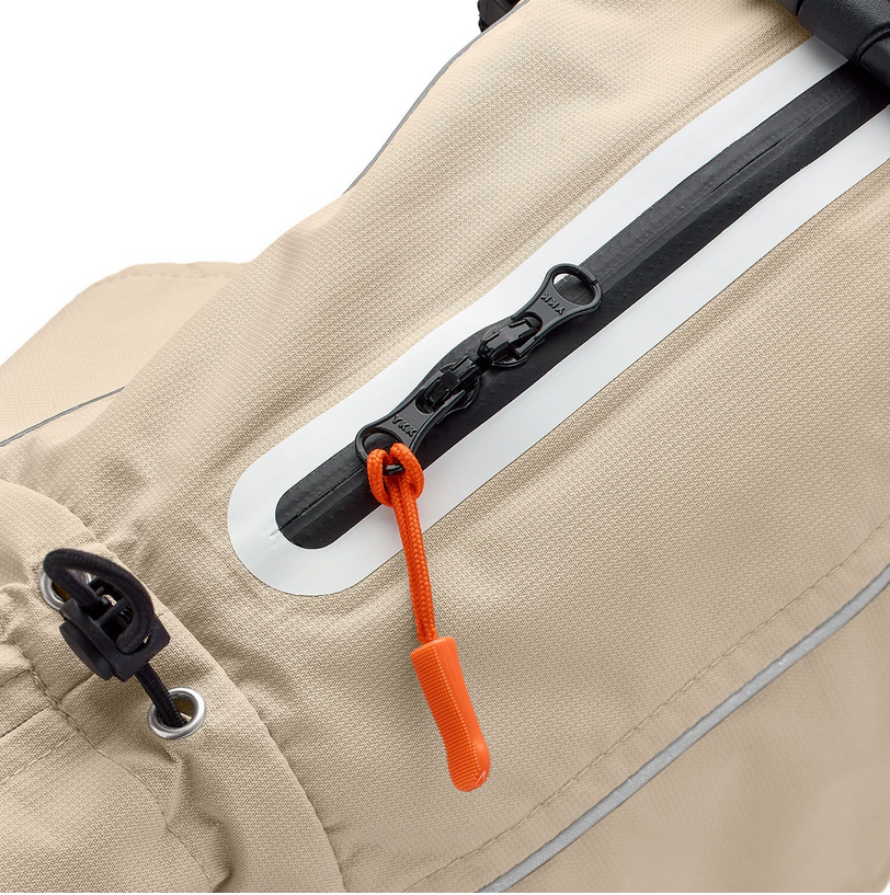 • Hoher Halskragen und geschlossene Bauchseite zum Schutz vor Regen und Wind